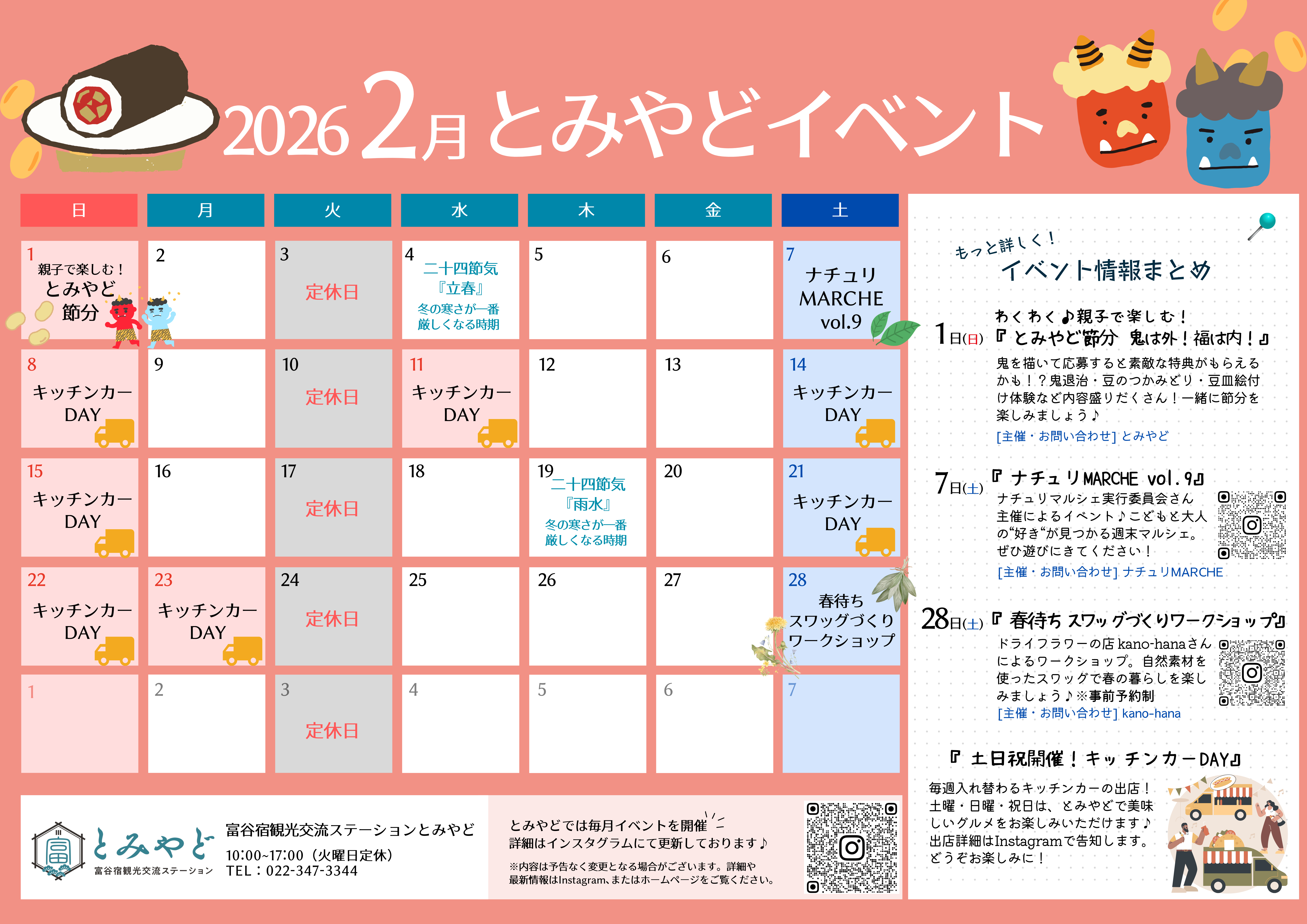 1日(日):わくわく♪親子で楽しむ『とみやど節分』 鬼は外!福は内!👹🫘🥜